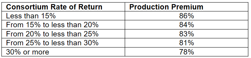 A 30% Investment Premium was set on all capital expenditures incurred in each tax year from commencement of production.